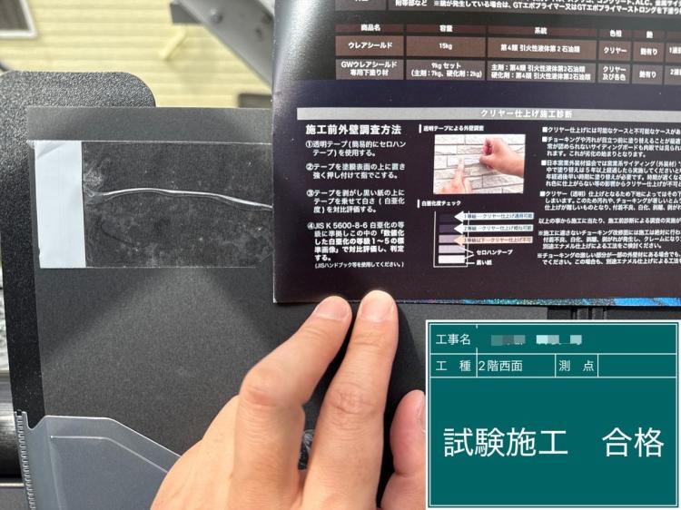 外壁クリヤー塗装 再施工に向けた試験施工M様邸