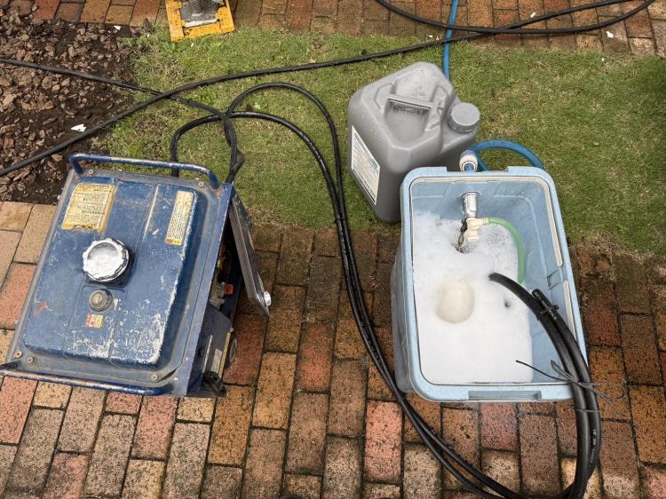 高圧洗浄+薬品洗浄+専用パッドによる肌調整も事前に行いました。これにより塗料の密着性をしっかり確保。