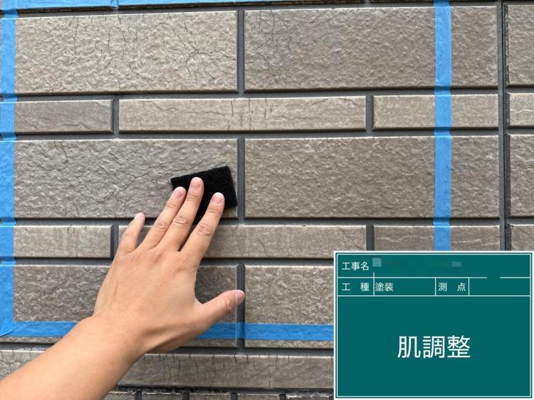 外壁の意匠性を活かしながら、美しさと耐久性を長持ちさせる再塗装工事、このまま本施工へと入ります!